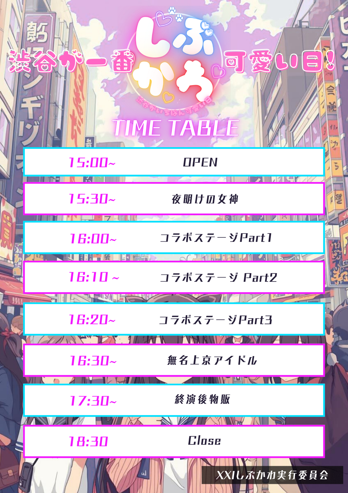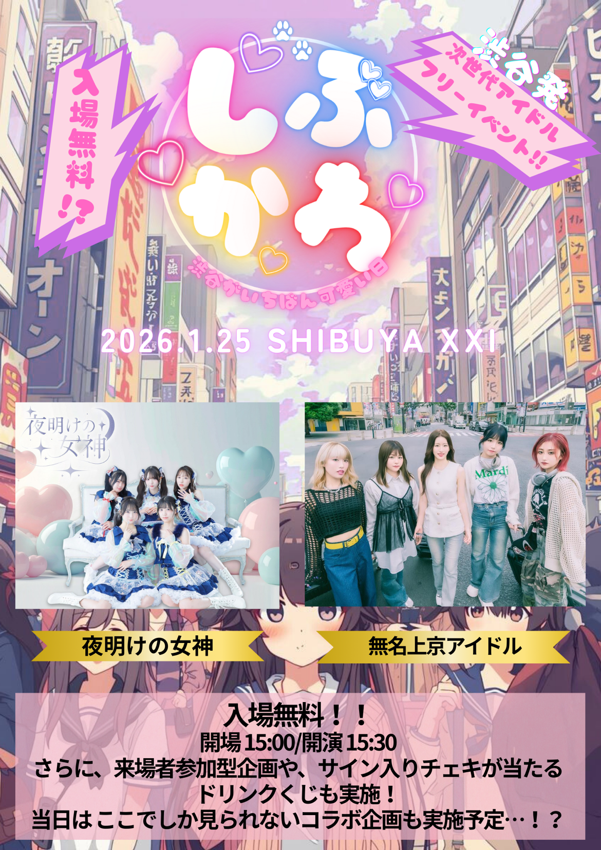 出演者 無名上京アイドル 夜明けの女神 OPEN 15:00 / START 15:30 入場無料 アイドル / 邦楽カバー