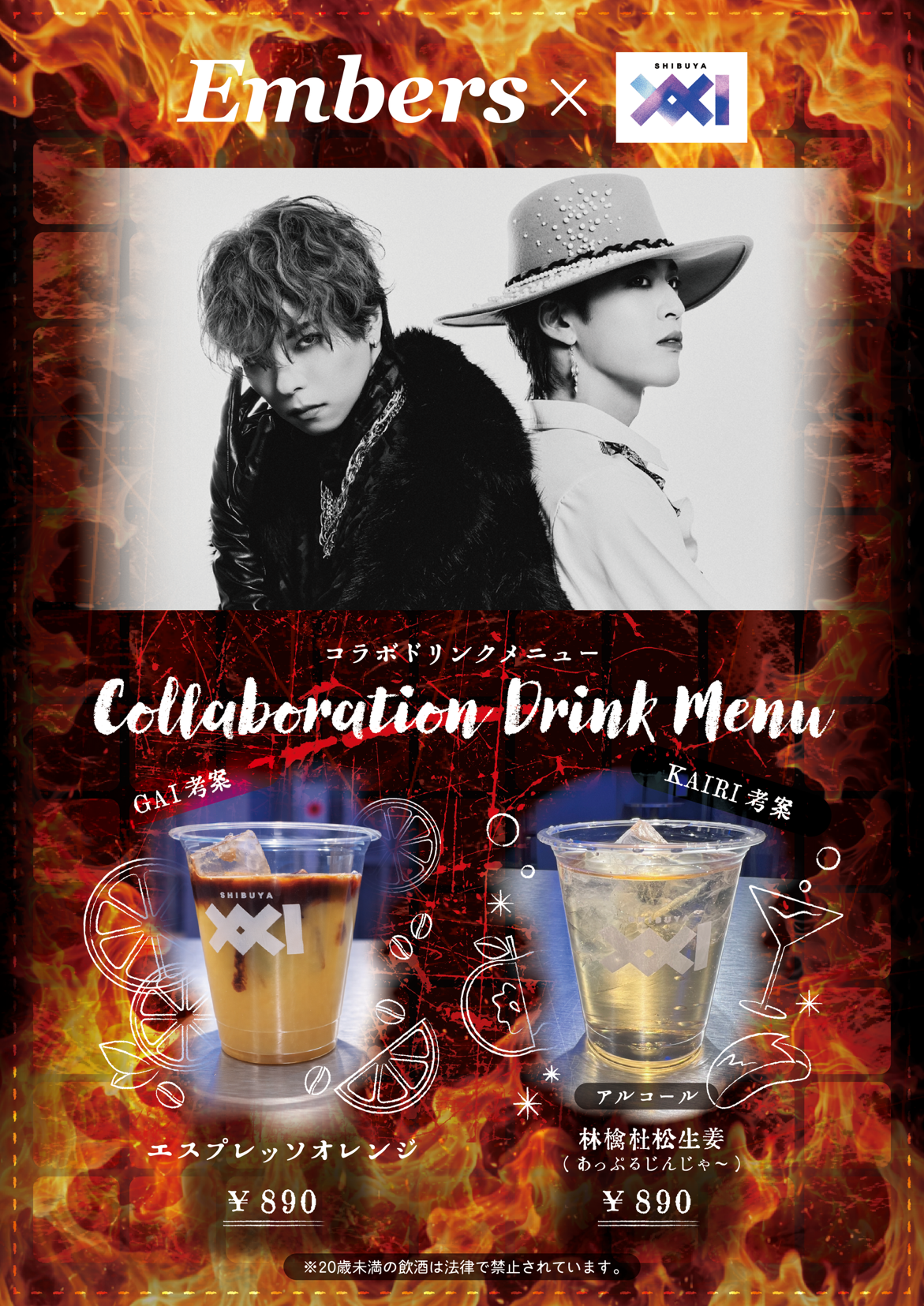 ◆GOODS販売&Embersコラボドリンク 開催日:2月1日(日) 場 所:SHIBUYA XXI(https://shibuya-xxi.jp/) 内 容:GOODS販売&Embersコラボドリンクを販売予定 ※GOODS&コラボドリンクは、チケットをお持ちでない方でもご購入いただけます